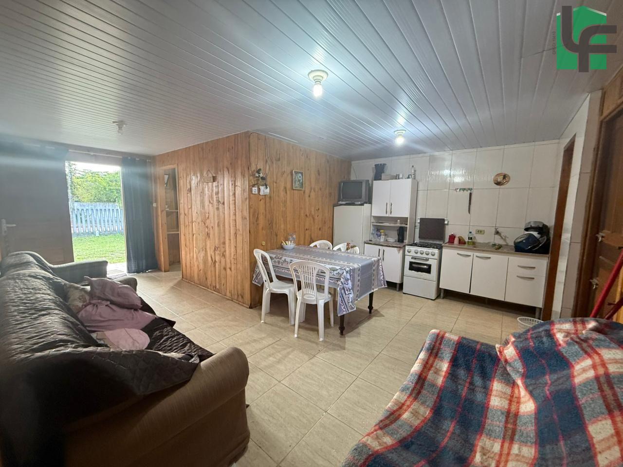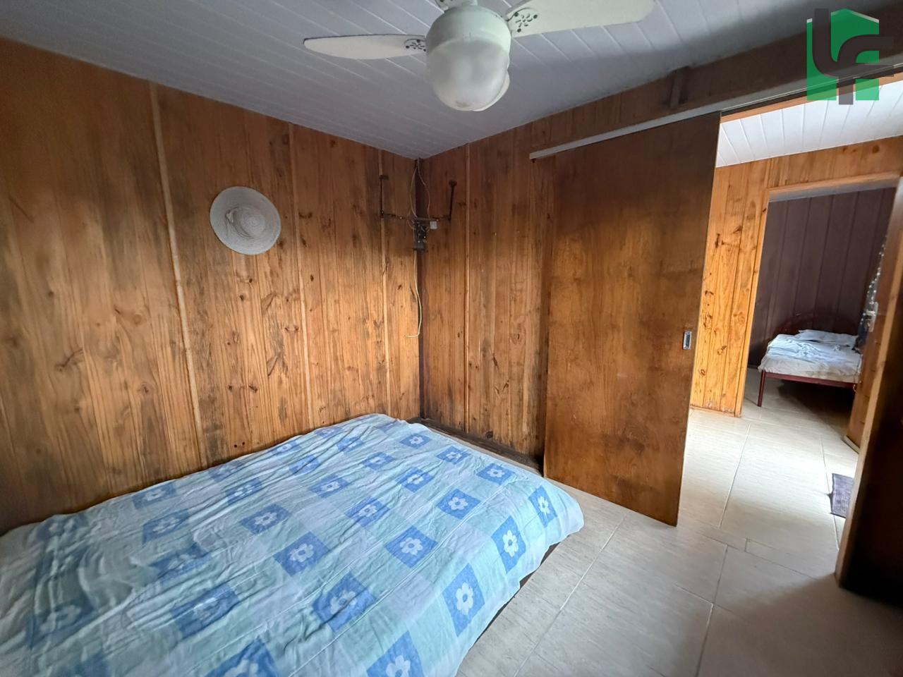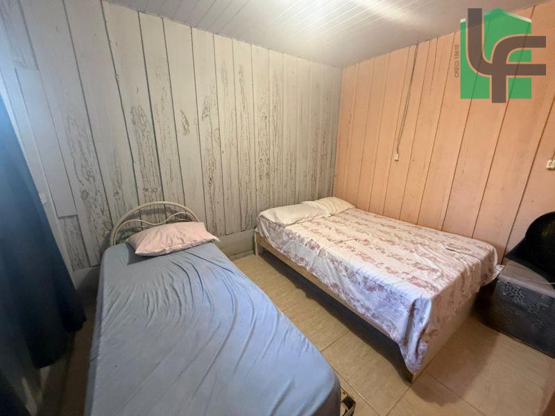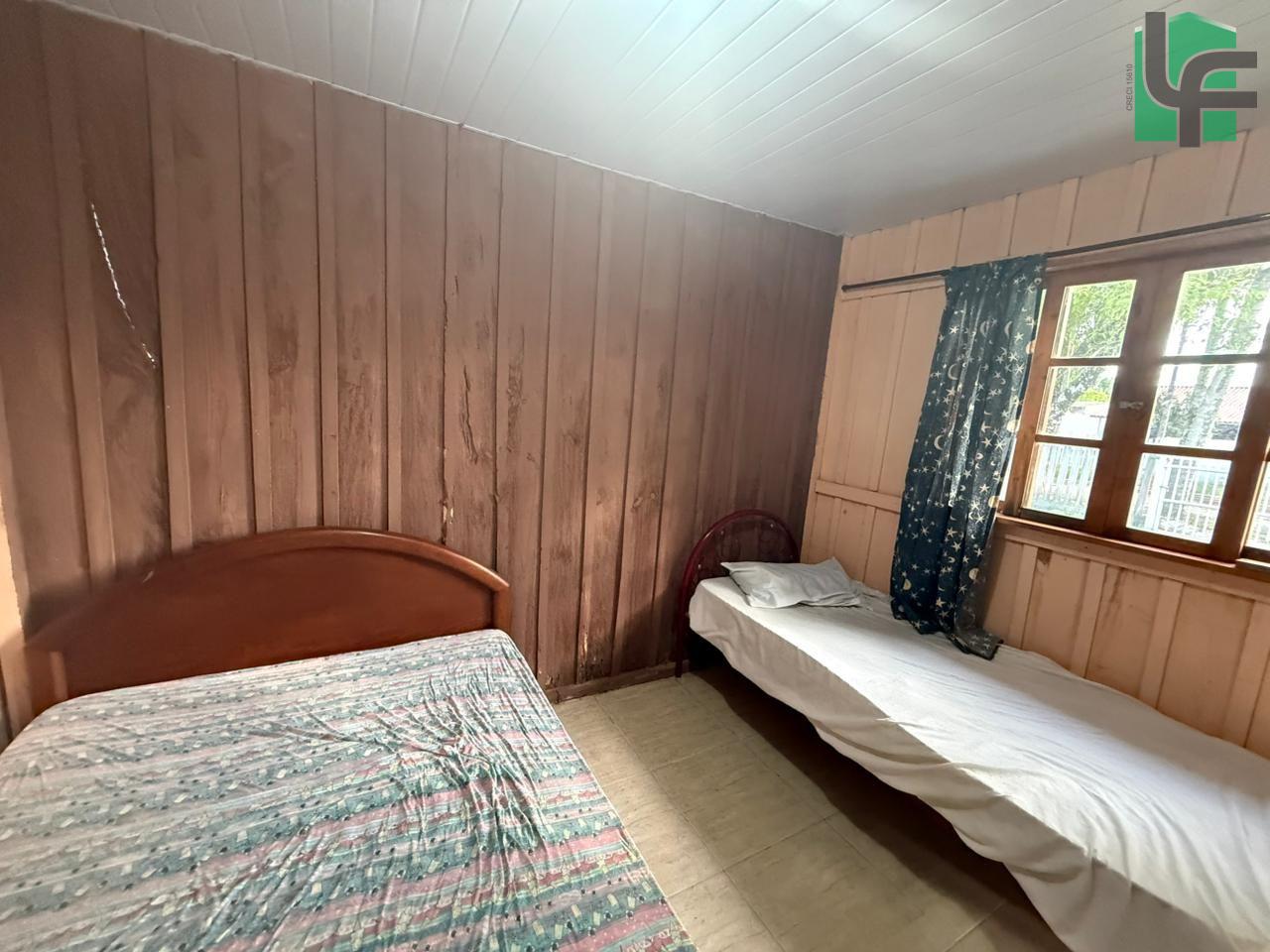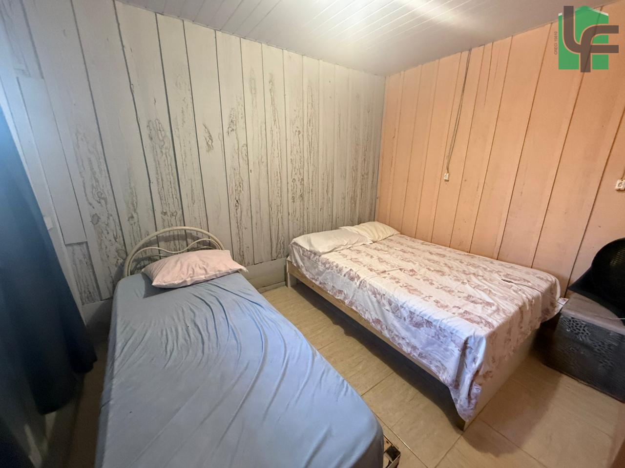 NA PARTE DA FRENTE CASA PRÉ-FABRICADA DE MADEIRA COM APROXIMADAMENTE 60,00 M², CONTENDO 03 QUARTOS, SALA, COZINHA, BANHEIRO, VARANDA, ÁREA DE SERVIÇO, CHURRASQUEIRA E BANHEIRO