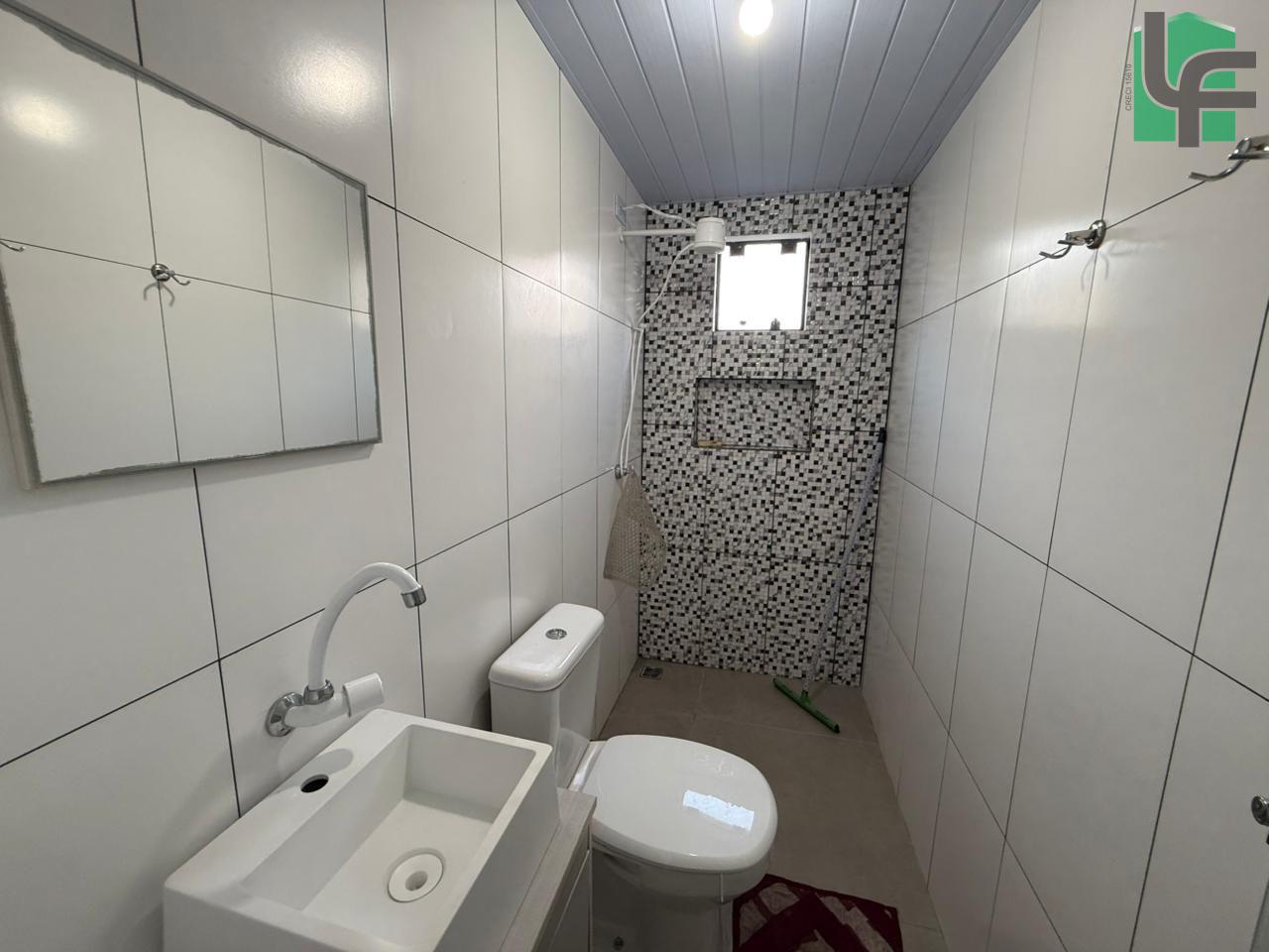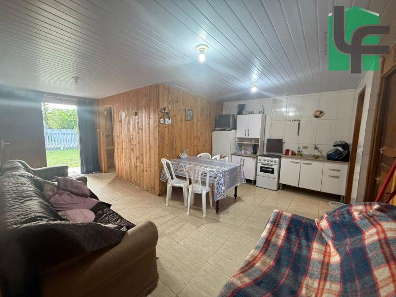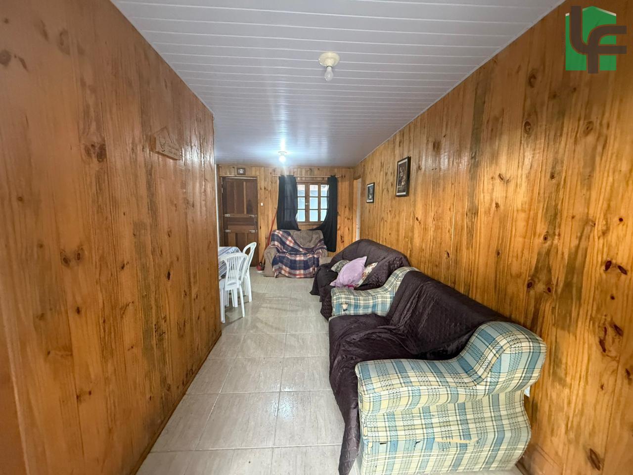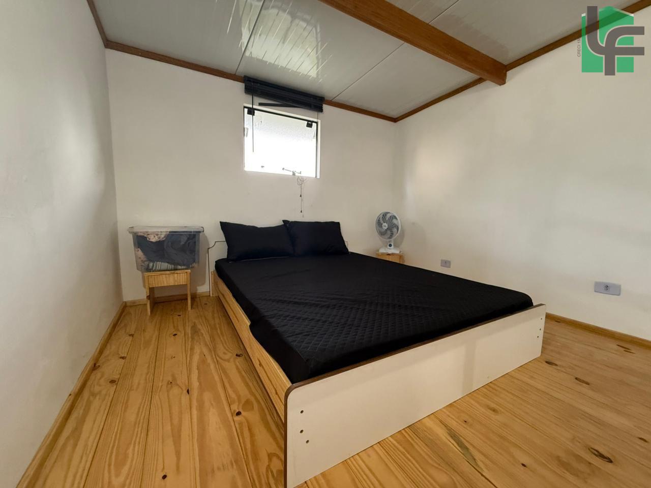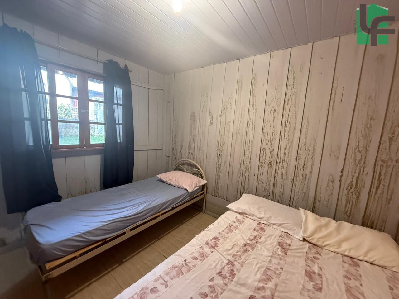 NA PARTE DA FRENTE CASA PRÉ-FABRICADA DE MADEIRA COM APROXIMADAMENTE 60,00 M², CONTENDO 03 QUARTOS, SALA, COZINHA, BANHEIRO, VARANDA, ÁREA DE SERVIÇO, CHURRASQUEIRA E BANHEIRO