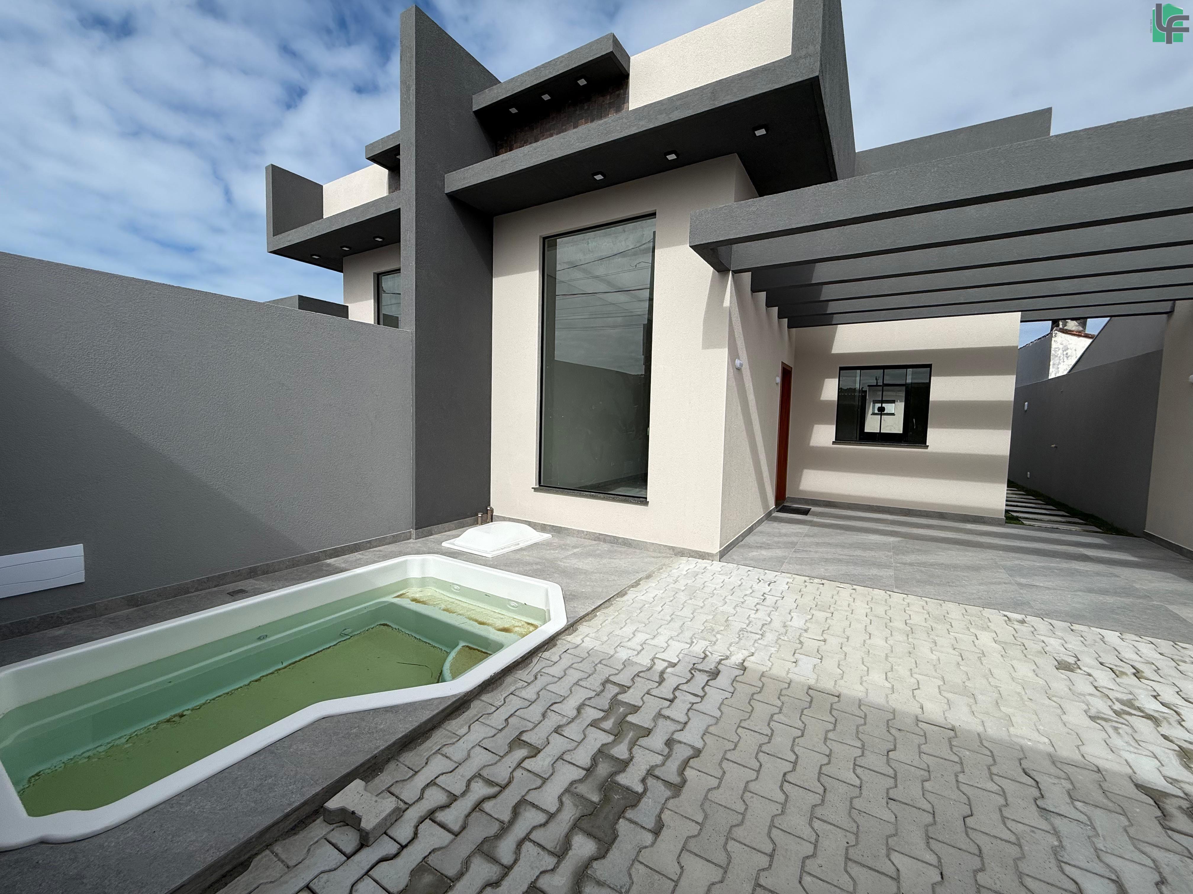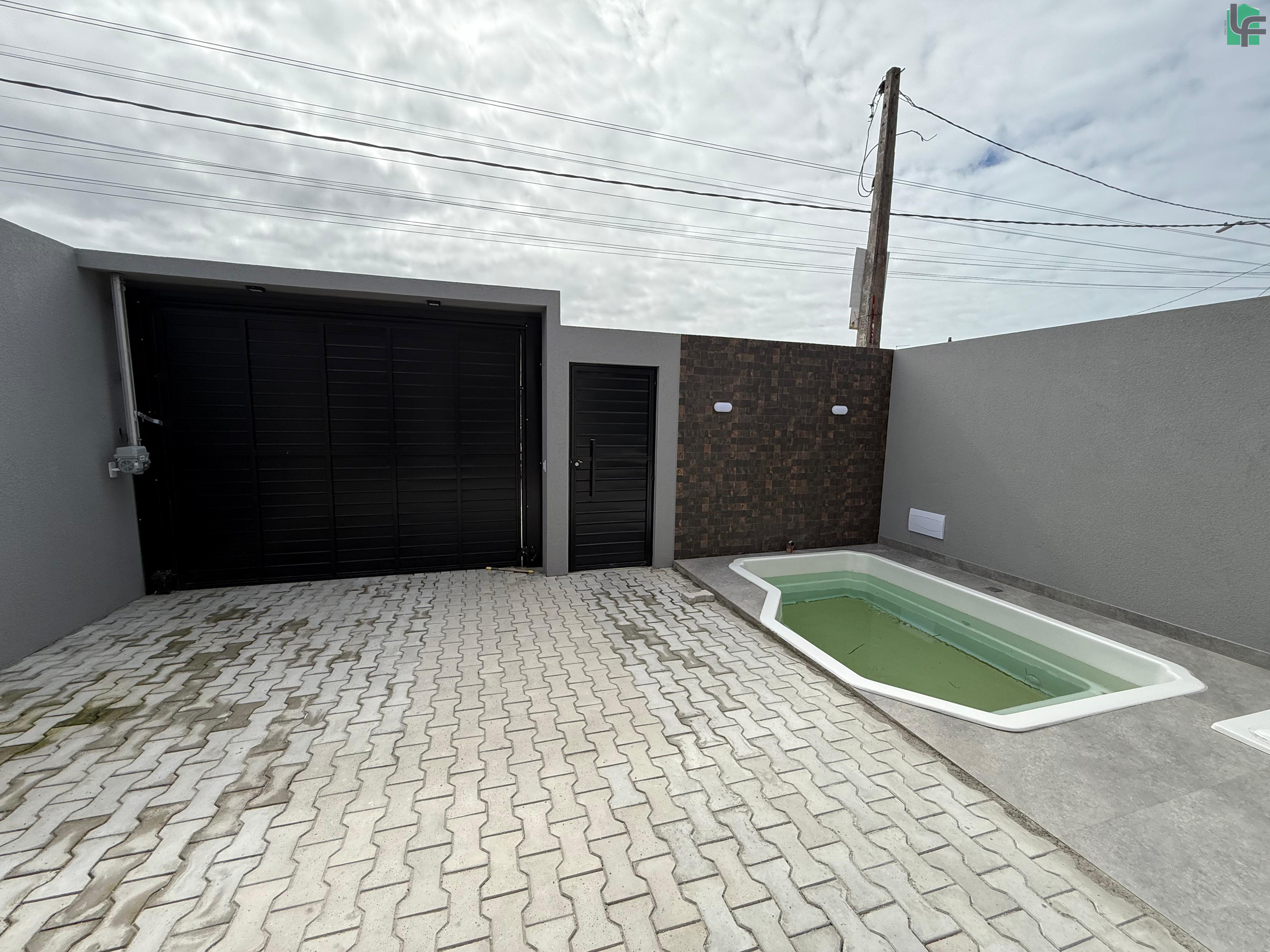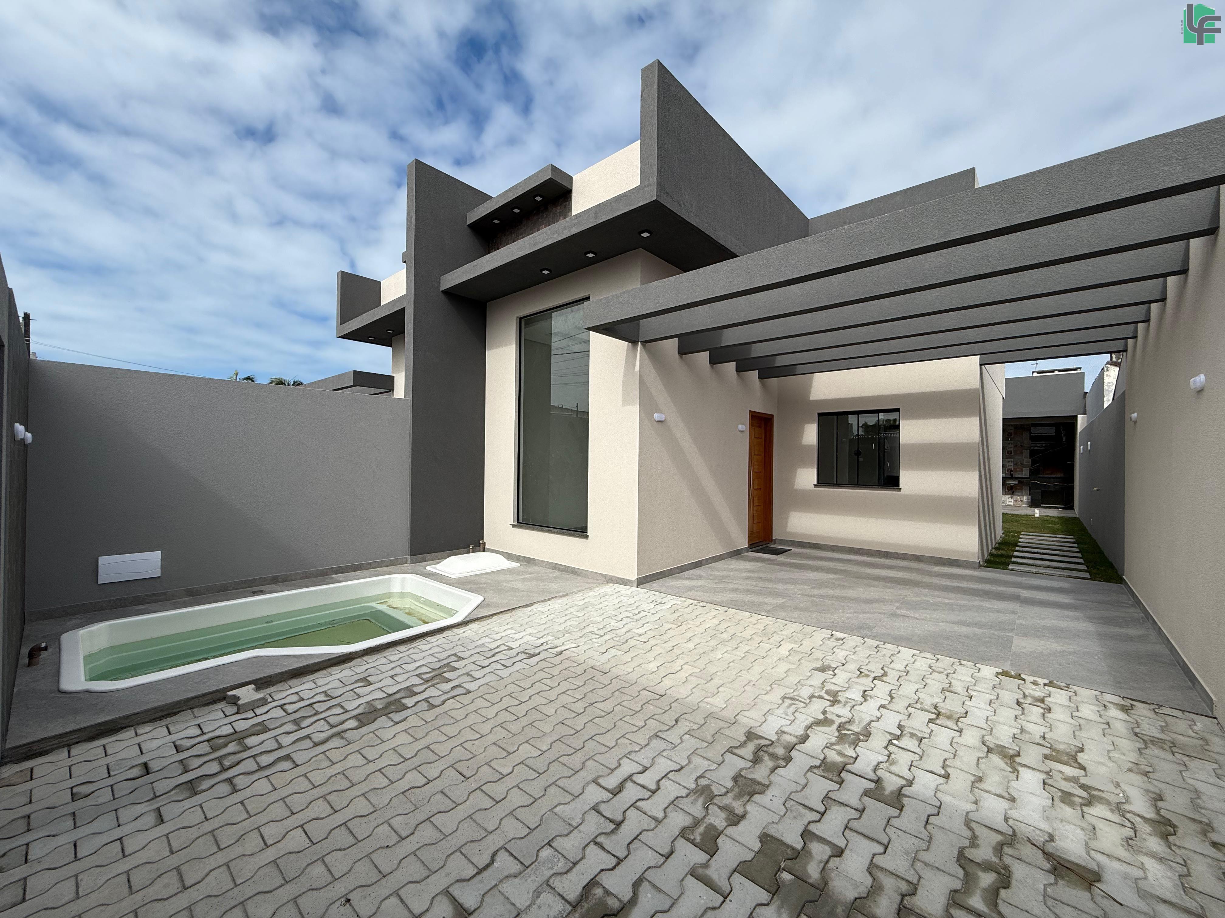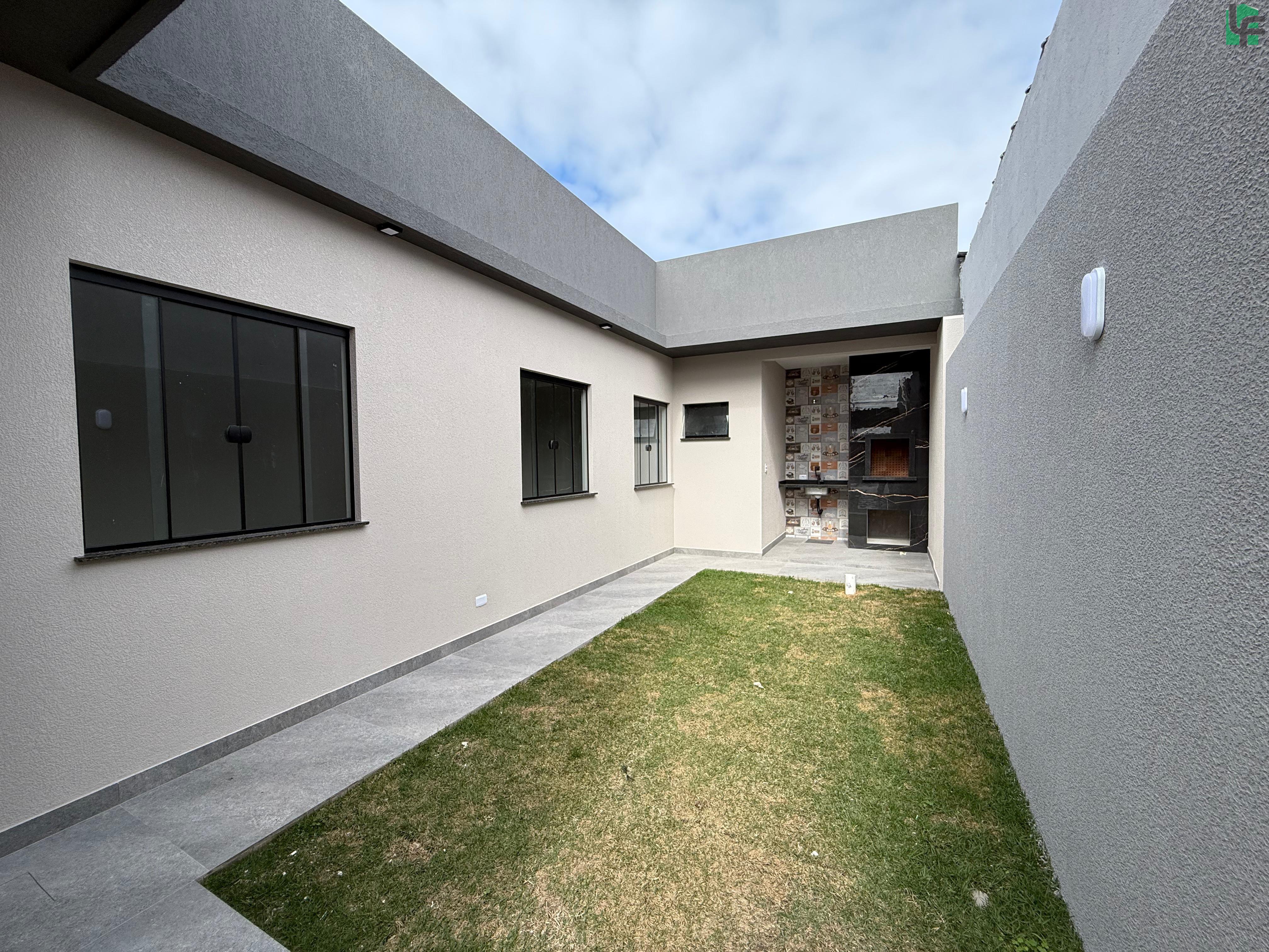 03 QUARTOS (1 SUÍTE), SALA, COZINHA, 02 BANHEIROS, ÁREA DE SERVIÇO, ÁREA COBERTA COM CHURRASQUEIRA, GARAGEM, PISCINA PEQUENA NA FRENTE