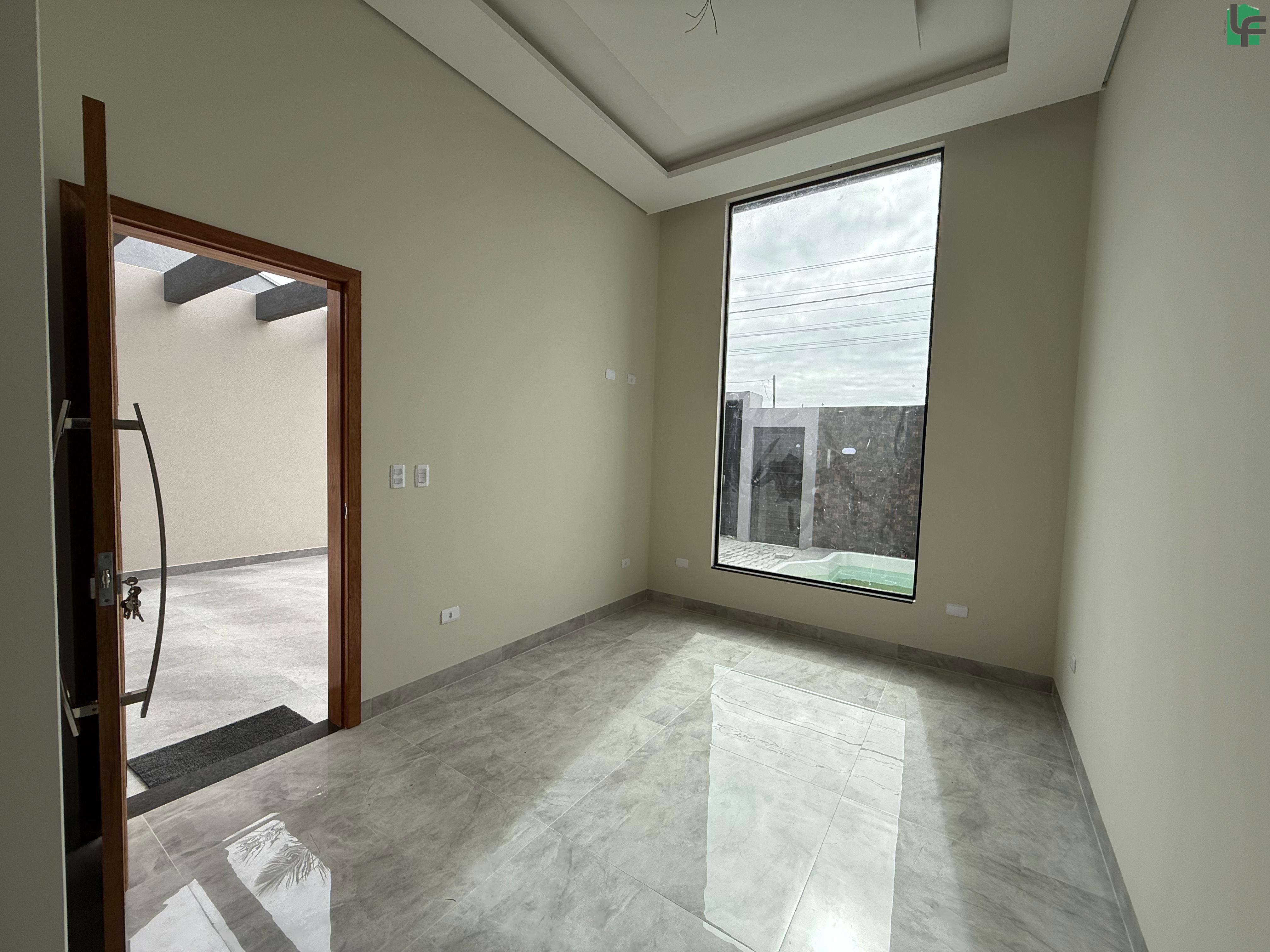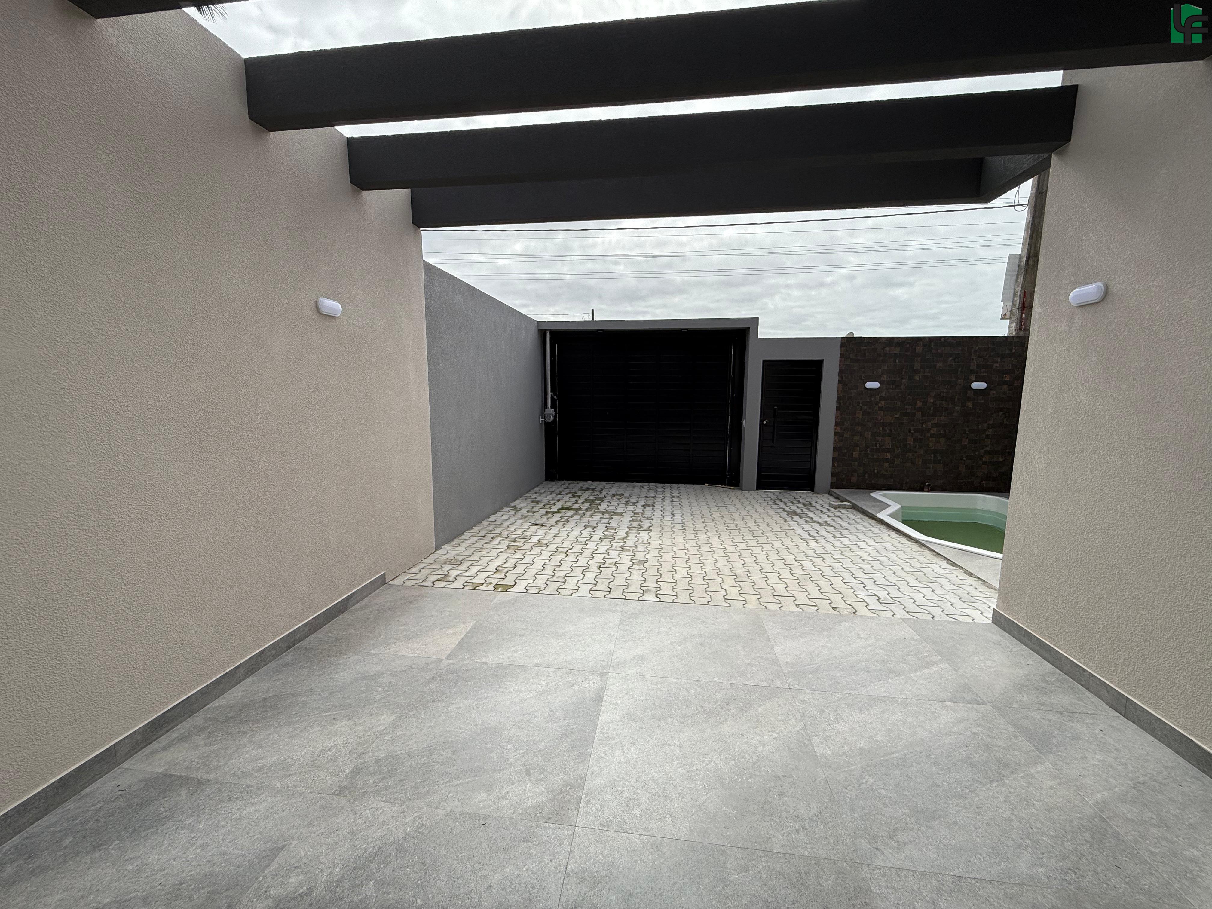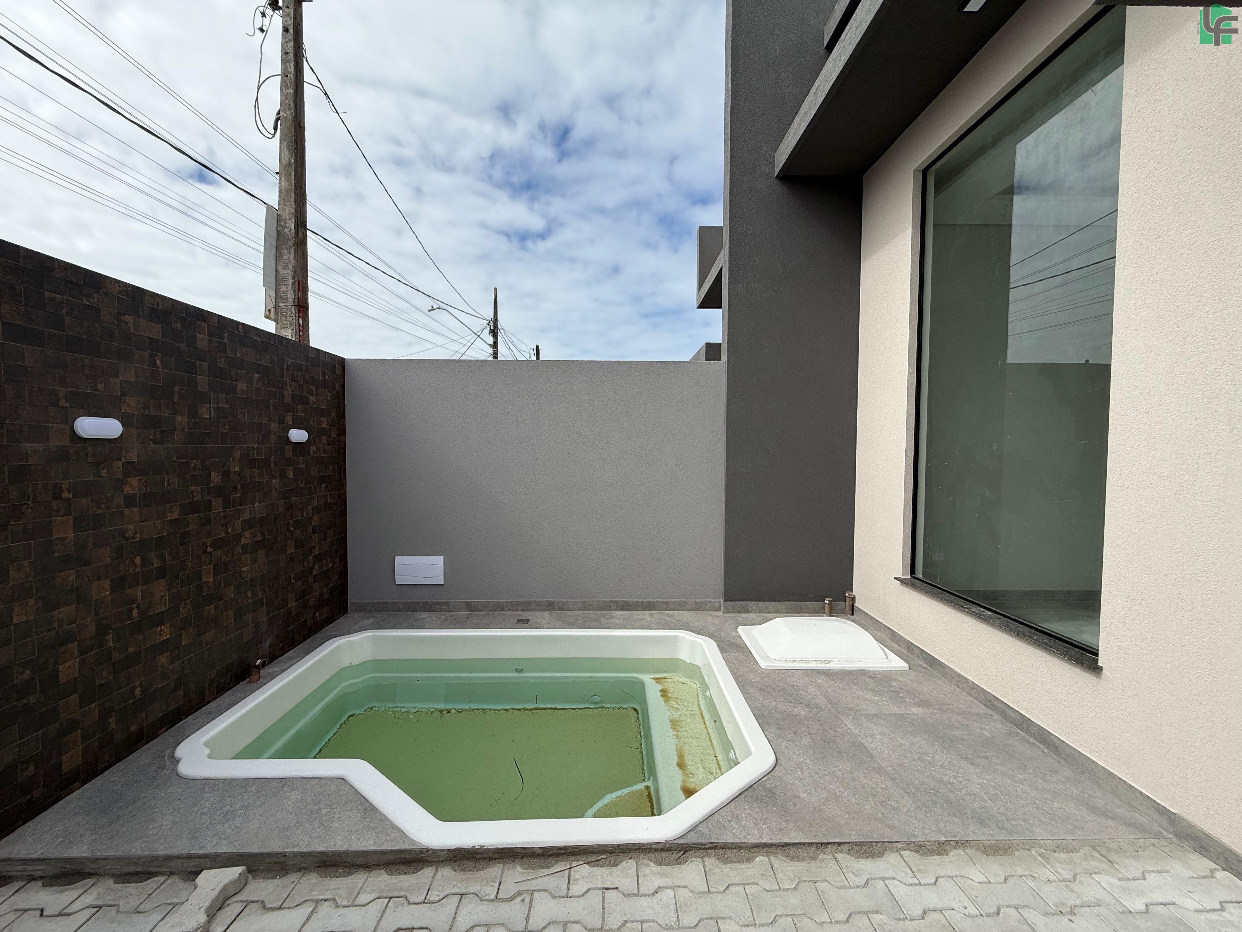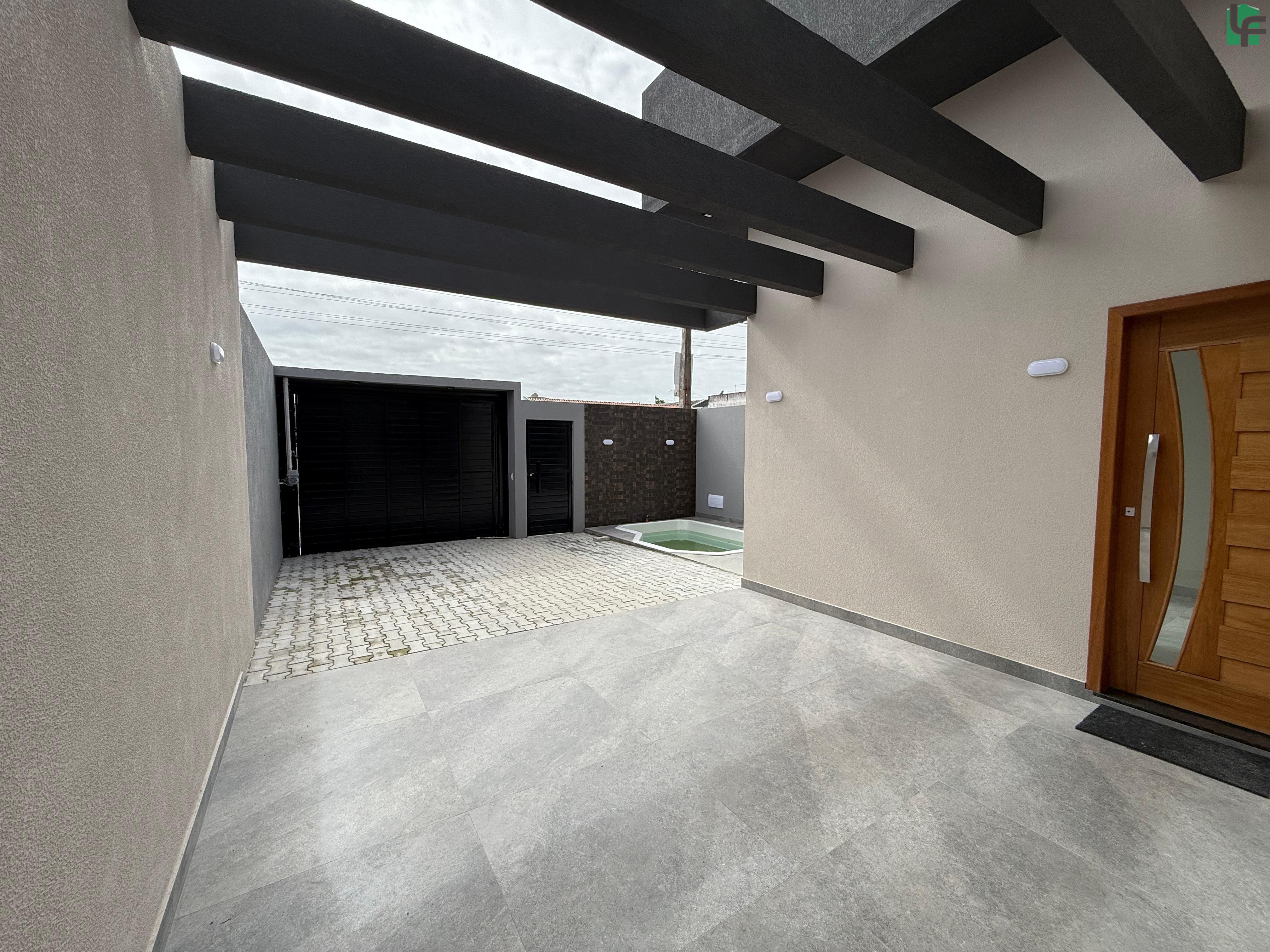 03 QUARTOS (1 SUÍTE), SALA, COZINHA, 02 BANHEIROS, ÁREA DE SERVIÇO, ÁREA COBERTA COM CHURRASQUEIRA, GARAGEM, PISCINA PEQUENA NA FRENTE