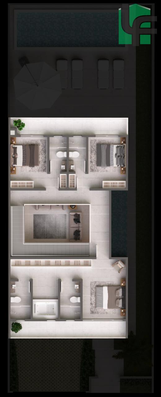 03 SUÍTES COM SACADAS SENDO UMA DAS SUÍTES COM BANHEIRA E BANHEIRO ELE E ELA